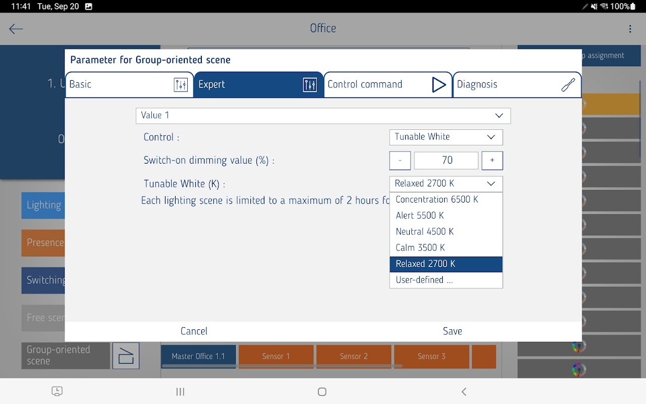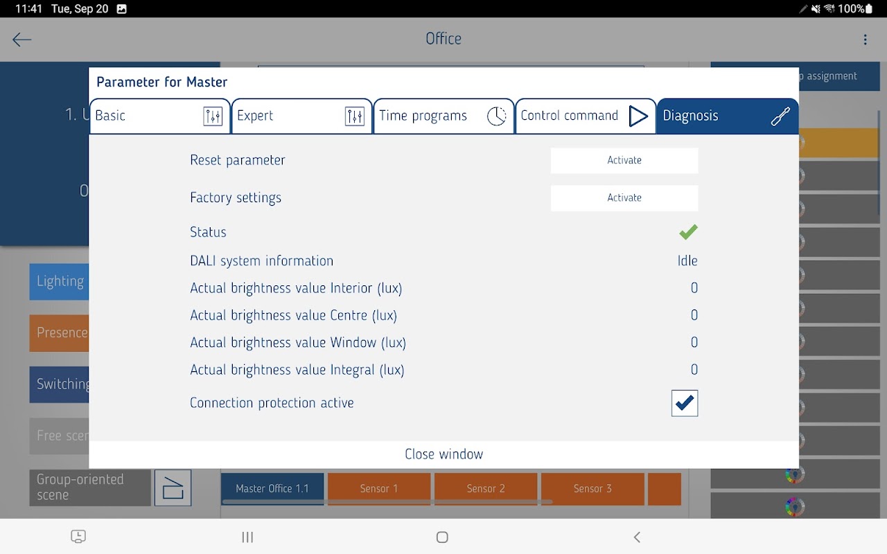 The tablet and the presence detectors communicate bidirectionally via Bluetooth. This means that all parameters can be read out quickly and easily. In addition, firmware and function updates of the detectors can be installed in a very short time. This means that all devices are always up to date. Compared to other DALI-2 systems, the solution is extremely easy and intuitive to put into operation.