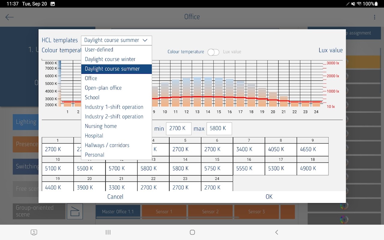 • Convenient setting and selection of HCL sequences, scenes and timer functions.