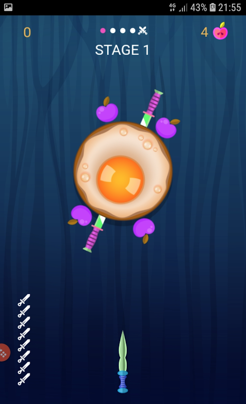 Throw the knives into the logs. Slash the apples and unlock new knives.