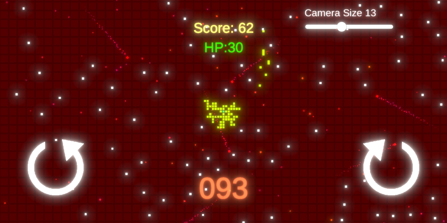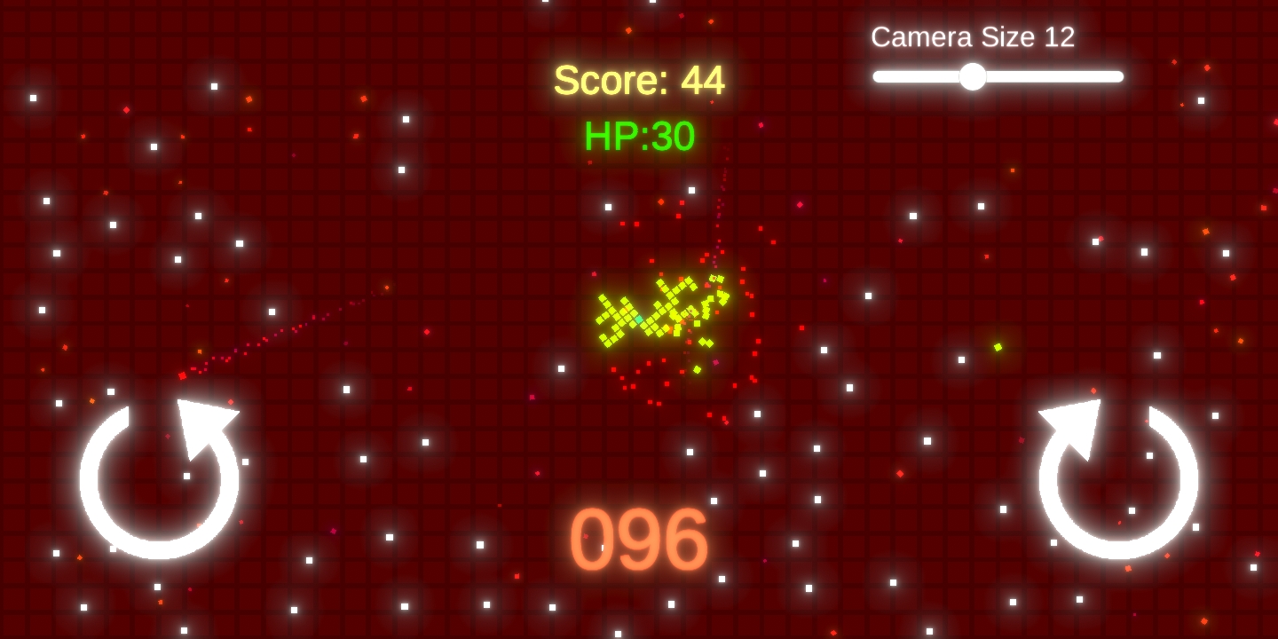 Collect cubes on the map to strengthen your defense and dodge enemies! Can you last 120 seconds in bullet-hell hell? Explosions, special effects and hardcore!