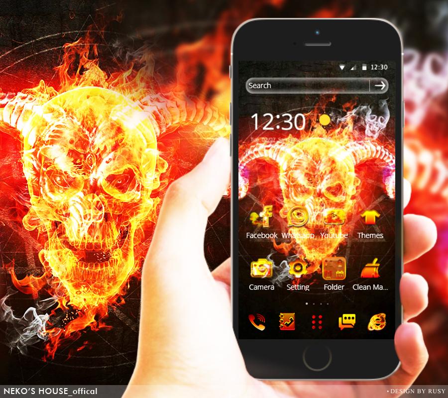 ⭐⭐⭐Dark Flame(Fire) Horn Skull Theme is a cm launcher cool theme with 3D technology for android mobile phone.