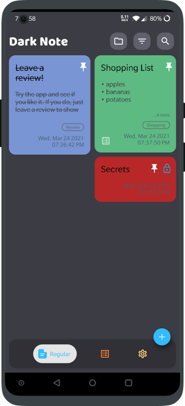 Dark note is simple and intuitive note app for notes and grocery lists.