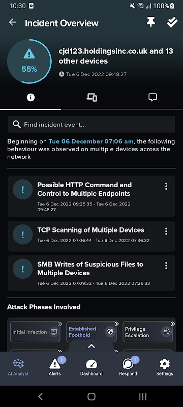 The Darktrace Mobile App is a brand new way to experience the Darktrace Threat Visualizer and benefit from Darktrace DETECT and Darktrace RESPOND technologies from wherever you are. With real-time threat notifications and the ability to activate AI-driven autonomous response, the Darktrace Mobile App allows you to stay connected with your Darktrace deployment at all times.