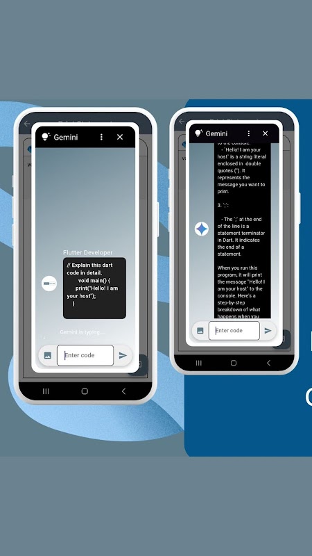 Gemini is here to answer all your Dart and Flutter-related questions. Stuck on a widget? Confused about a Dart function? Just ask Gemini. Think of it as your coding buddy who never gets tired of helping.