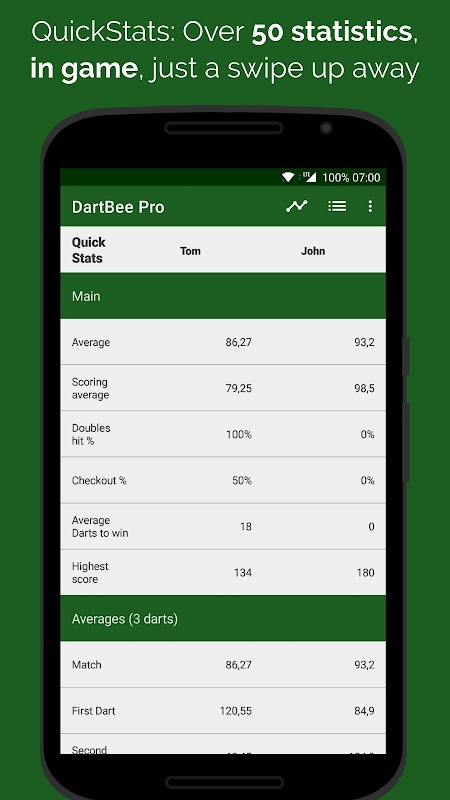 ⭐In game live statistics: average score, checkout percentage, 180's and more!
