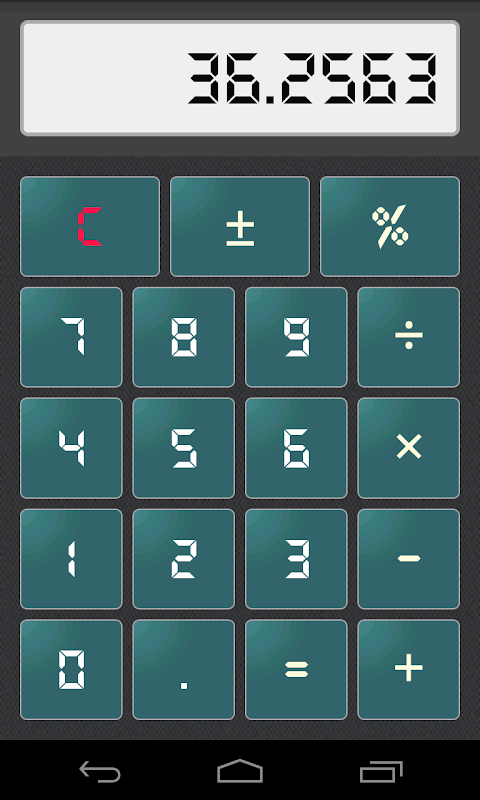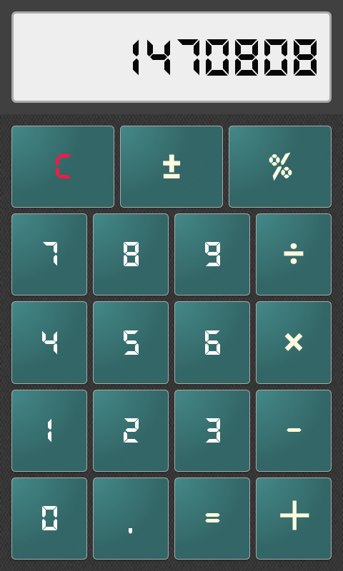 The calculator fits the screen and can display numerous digits.