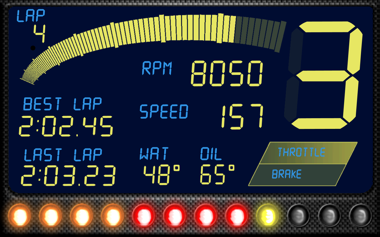 - Two additional LEDs Bar are available to display the throttle/brake position, the RPM and the DRS status.