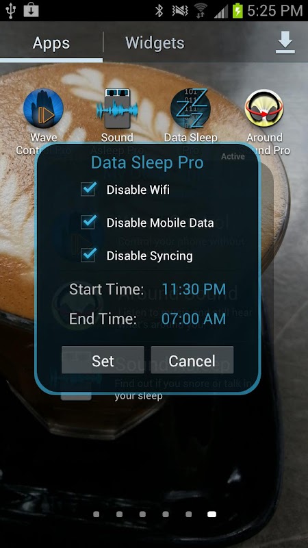 With Data Sleep you set the start and end time and hit Set. That's it.