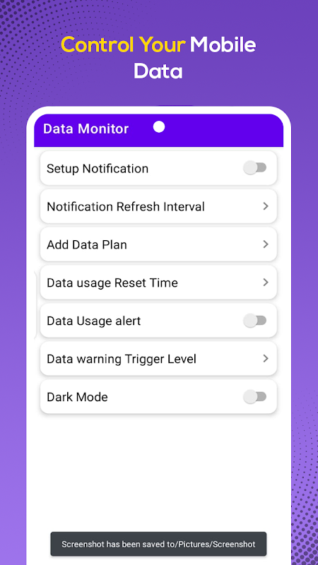 • Internet speed meter monitors mobile Data Usage and Wi-Fi Data Usage, giving different options for setting usage alerts.