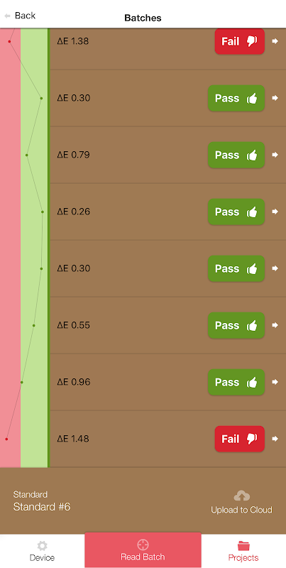 Datacolor MobileQC enables you to easily implement color quality control checkpoints in your color workflow. Paired with ColorReader Spectro, you can create & store color projects by customer or job and easily evaluate color samples with pass/fail indicators. You can further evaluate colors with color plots and spectral curves. You can also customize your color quality control process by setting primary, secondary, and tertiary illuminants & observers, tolerances, color space, and number of readings per batch.