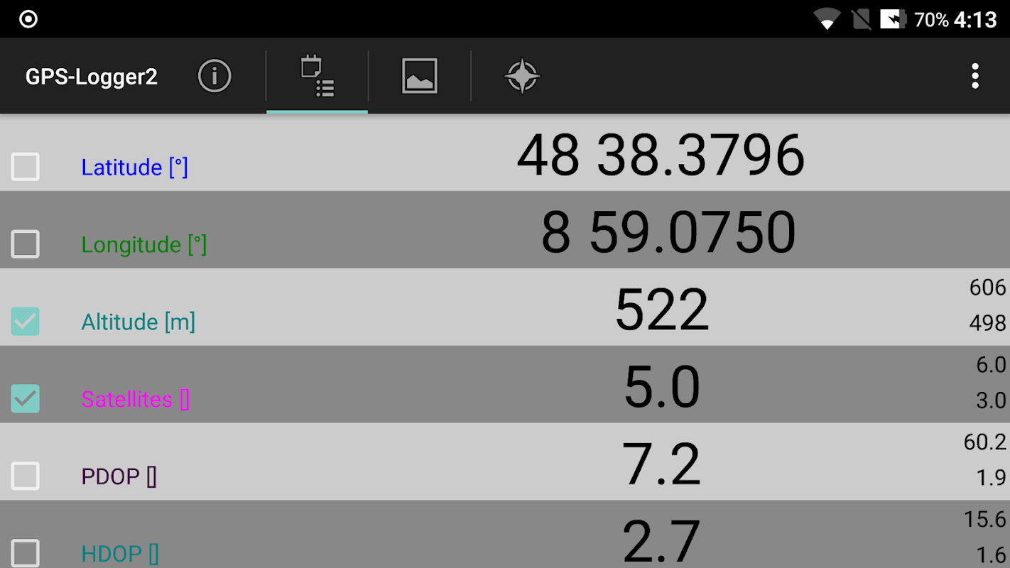 The DataExplorer for Android version is constrained to a single data set in respect of the lower overall resource power provided by mobile computers, like smartphone or tablets. Saved OSD-files can be exchanged between DataExplorer versions. National languages English, Frensh and German are actually available.