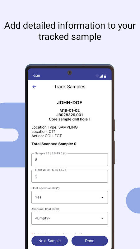 Sample data from scanned QR codes is validated immediately, ensuring that the right sample is selected for use for the right action. Tracking data can be entered for your samples as you process them, then you can upload that data easily to the main CCLAS EL application.