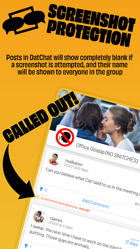 - Messages & posts are protected from screenshots with propriety anti-screenshot protection