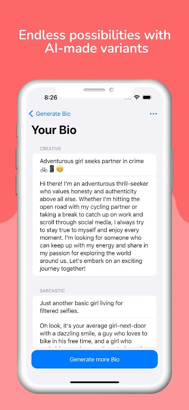 With Date AI, you'll never have to struggle with writer's block again when it comes to creating your dating profile. Our app uses advanced algorithms and cutting-edge technology to analyze your personality, interests, and preferences and generate a personalized and compelling profile description that is sure to catch the eye of your potential matches.