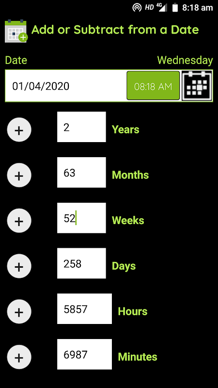 ✓ Use the "Add or Subtract from a Date" calculator to add or subtract date and time units and obtain a new date and time, as well as find the weekday of the new date.