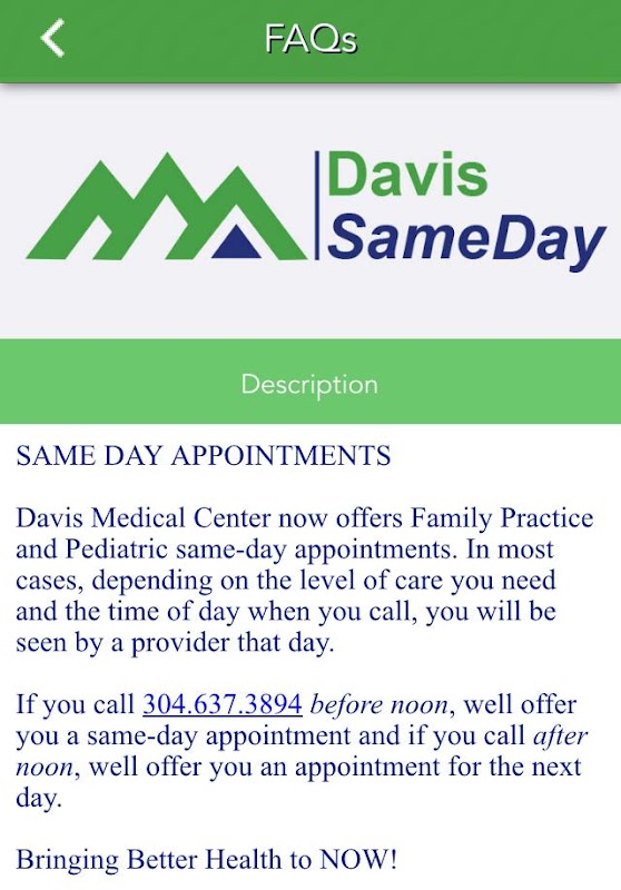 Davis Medical Center now offers Family Practice and Pediatric same-day appointments.
