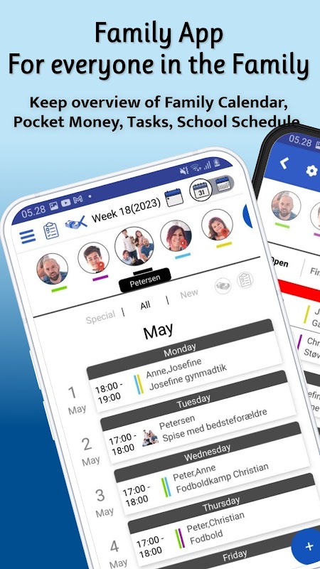 The app also includes functionality to support earning of and handling Pocket Money so the children in the family can earn pocket money by performing regular household duties in the family.
