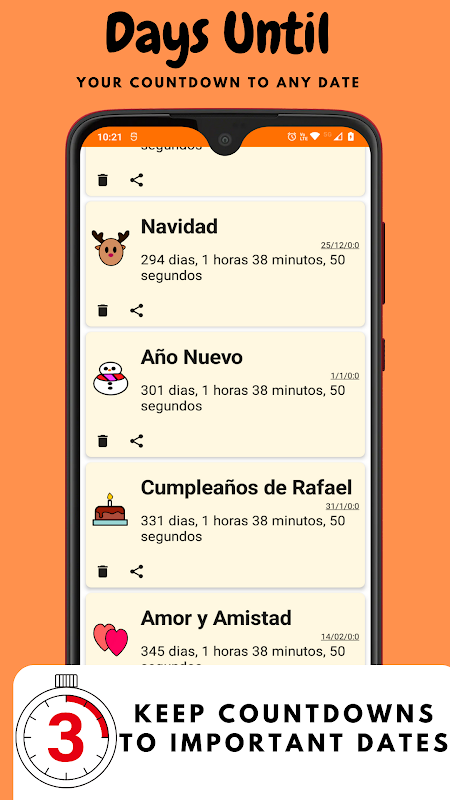 Keep track of important dates with coundowns to any date & share with friends