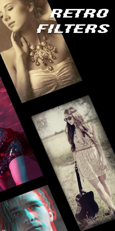- More than 100 color filters: vintage, retro, black and white, cinematic, portrait, mood, landscape ...