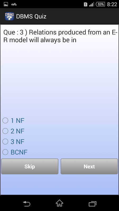 DBMS Quiz -> Test your DBMS Skills with this App.
