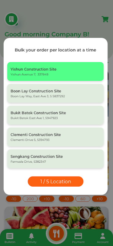 A B2B food bulk ordering platform that connects corporate with cloud kitchen.