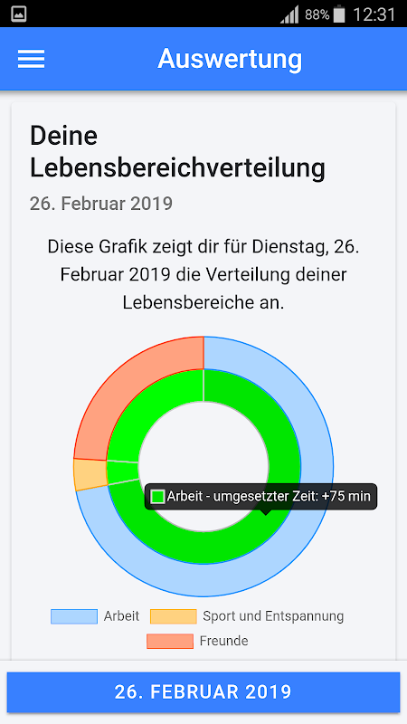 DE-RENA supports its users to permanently anchor their behavioral changes and intentions developed in prevention, therapy or rehabilitation in their everyday lives and thus to prevent relapses. The central element of DE-RENA is the daily planning and evaluation via the app, taking into account the user's desired balance of his areas of life. In addition to automated feedback on his progress in the app, the user is accompanied by a coach on the phone, who keeps track of his development via the coaching solution and can precisely support him on the basis of his input in the app.