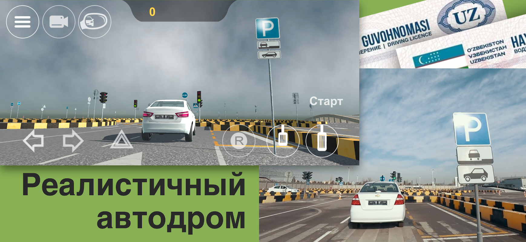 🚗 Autodrom PDD Usbekistan – Simulator des Autodroms und der Verkehrsregeln zur Vorbereitung auf die praktische Prüfung (Simulation) für die Kategorien B, C, D.