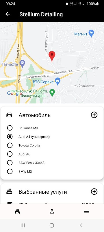 Online-Registrierung für eine Autowaschanlage.
