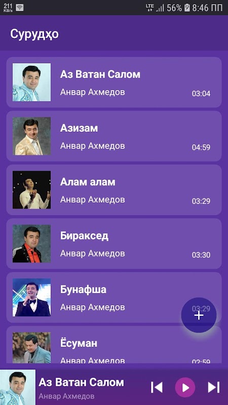 Anvar Akhmedov ist ein moderner Sänger aus Tadschikistan, der Lieder im klassischen Stil singt. Es hat eine durchschnittliche Beliebtheit unter den Menschen als andere Konkurrenten. Anvarjon hat einen besonderen Respekt unter der Bevölkerung der Stadt Khujand und ein einzigartiges Talent für die Erstellung berührender Clips. Anwars wichtigste negative Aktivität ist das oftige Ausleihen usbekischer Werke.