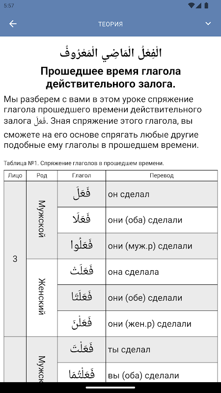 Versuchen Sie, die Lektionen der Reihe nach zu studieren, beginnen Sie mit der ersten und fahren Sie erst dann mit der zweiten Lektion fort, nachdem Sie den Stoff dieser Lektion gefestigt haben, und so weiter. Nachdem Sie sich für eine Lektion entschieden haben, lesen Sie zunächst sorgfältig die Theorie, die Regeln zur Bildung von Verben und ihre Übersetzungen und versuchen Sie, sie zu verstehen und sich daran zu erinnern. Gehen Sie dann zum Unterabschnitt „Üben“ von Arabisch – Russisch. Hier werden Übersetzungen von Verben auf Russisch in zufälliger Reihenfolge angezeigt und Sie müssen die entsprechende arabische Form des Verbs auswählen. Üben Sie hier, um das Gelernte zu festigen, bis Sie das Gefühl haben, dass Sie es gut beherrschen. Wenn Sie keine Fehler mehr machen, überprüfen Sie sich selbst, indem Sie im selben Unterabschnitt Arabisch – Russisch auf „Überprüfen“ klicken. Wenn Sie mit der Bewertung zufrieden sind, fahren Sie mit dem nächsten Unterabschnitt Russisch – Arabisch fort. Im Gegensatz dazu werden hier arabische Formen von Verben angegeben, und Sie müssen deren Übersetzung aus den folgenden Daten richtig auswählen. Auch hier: Beheben Sie das Problem zunächst unter „Üben“ und testen Sie sich dann unter „Überprüfen“. Fahren Sie danach mit der nächsten Lektion fort. Es ist wichtig, beide Richtungen zu beherrschen – Arabisch-Russisch und Russisch-Arabisch, beschränken Sie sich nicht auf nur eine davon.