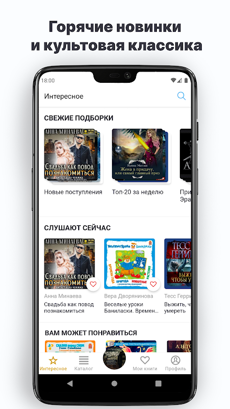 In unserer Anwendung für Literaturkenner finden Sie tausende Hörbücher und Hörspiele ausländischer und inländischer Autoren. Wir haben Hörbücher aller Genres – Science Fiction und Thriller, Mystik und Abenteuer, Krimis und Klassiker. Wir haben eine großartige Sammlung von Hörspielen und Märchen für Kinder, Bücher für Kinder bei Nacht, Hörmärchen und lustigen Geschichten zusammengestellt - eine Einladung in die Welt der Märchen und Abenteuer. Es gibt viele interessante Bücher zur Selbstentwicklung und Selbstverbesserung, Materialien zum Studium von Fremdsprachen und Wirtschaftsliteratur.
