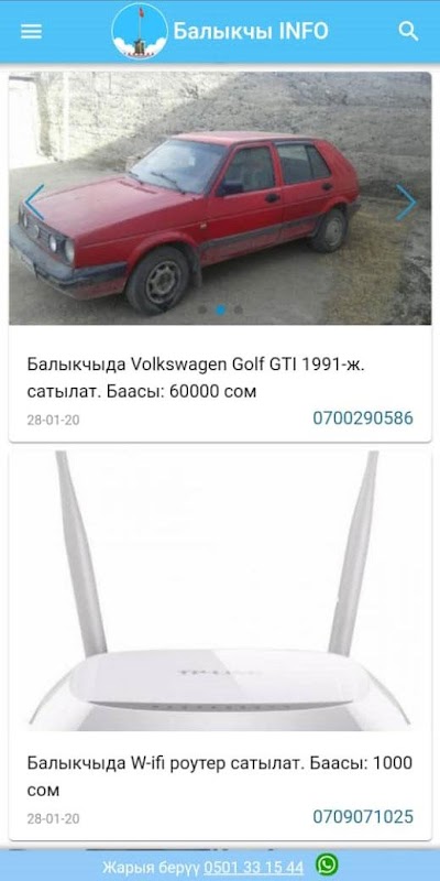 «Балыкчы INFO» мобилдик тиркемеси - Балыкчы шаары жана ага жакын жайгашкан айылдардын тургундарына жаңылык-жарнамалардан кабар берген заманбап тиркеме. Башка группаларга, сайттарга, социалдык тармактардагы баракчалаларга кошулуунун зарылчылыгы жок, Балыкчы шаарынын бардык жаңылык-жарнамалары бир тиркемеде.