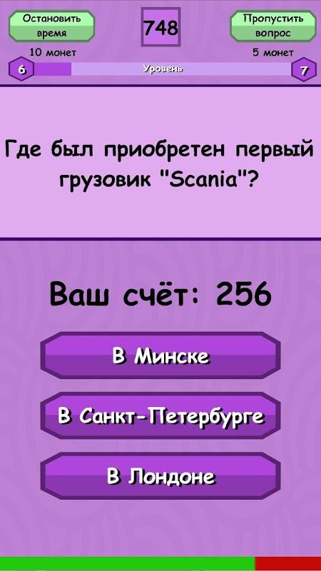 В игре присутствует уровень, чем больше уровень, тем больше баллов вы будете получать за правильный ответ и больше времени будет даваться на ответ.