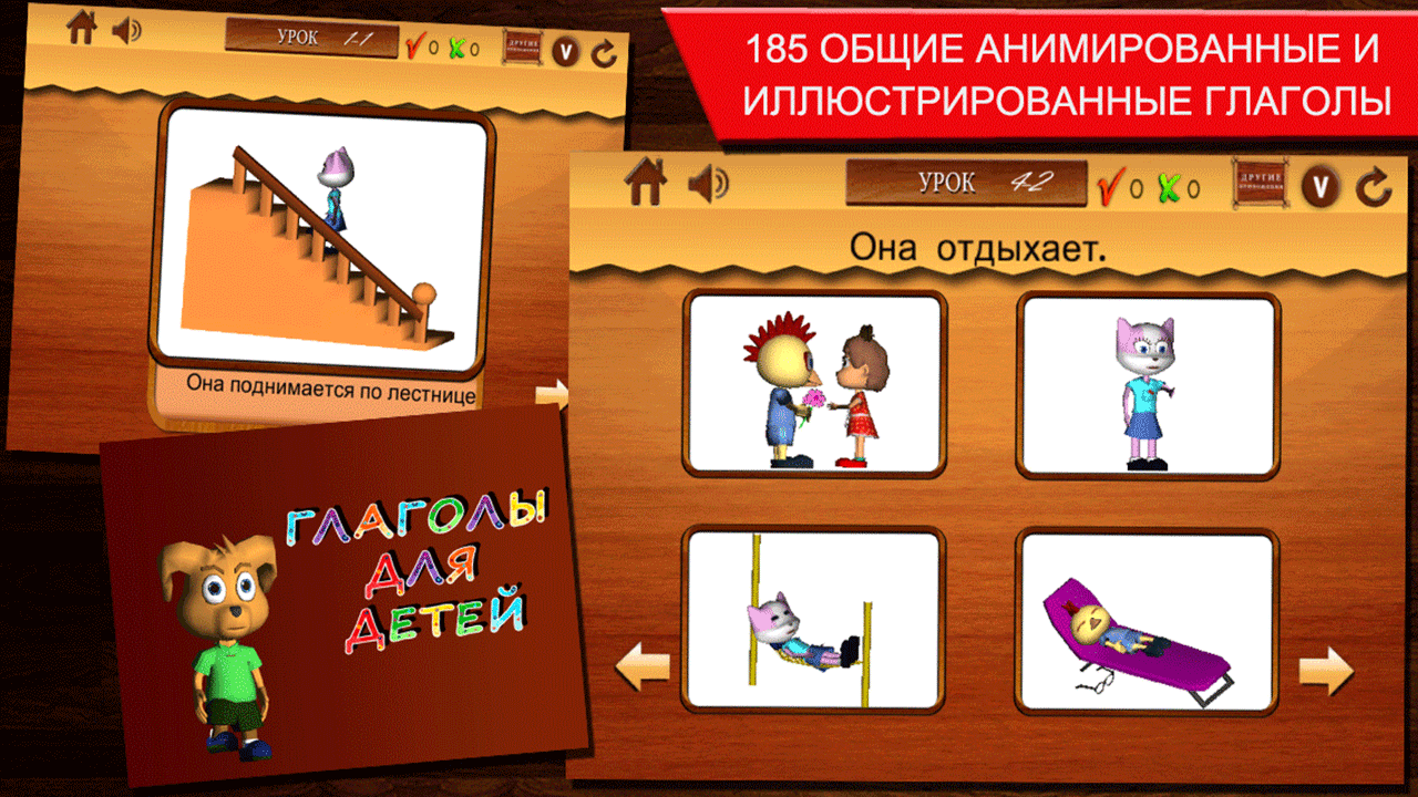 • содержит 185 анимированных и иллюстрированных наиболее распространенных глаголов