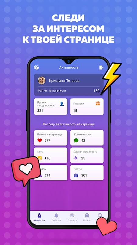 Mit unserer Anwendung können Sie nicht nur auf die Liste der VK-Gäste Ihres eigenen Kontos zugreifen, sondern auch auf viele bis heute verborgene Funktionen. Laden Sie alle Aktionen auf Ihrer VKontakte-Seite sowie auf den Seiten Ihrer Freunde und Benutzer mit Likes herunter und bleiben Sie auf dem Laufenden.