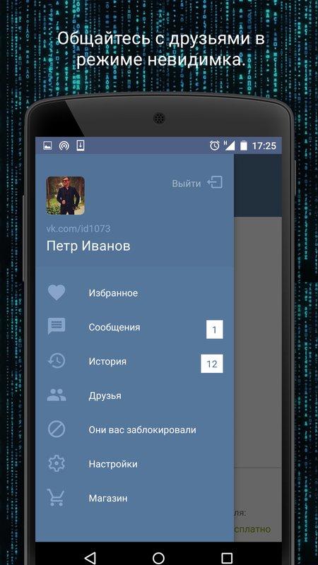 + Чат ВК в режиме невидимка. Пользуясь приложением собеседник не узнает, когда вы прочитаете его сообщения