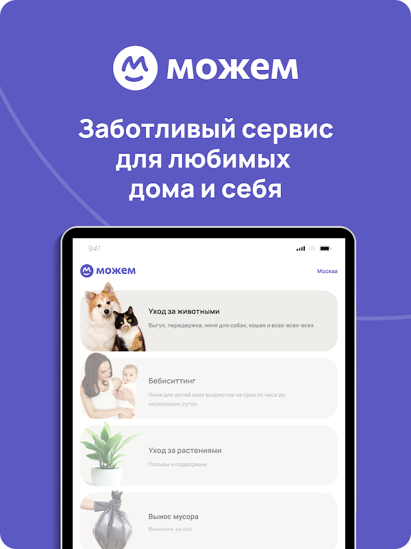 We Can ist ein Dienst, der einen Teil der Haushaltsaufgaben übernimmt. In der Anwendung sind bereits Dienstleistungen für Haustiere verfügbar: Gassigehen, Pflege, Kinderbetreuung für Katzen, Hunde und andere Haustiere. Wir werden bald hinzufügen: ein Babysitter für Kinder, der den Müll rausbringt und Blumen gießt. Wir haben die marktbekannten Projekte Guldog, Murchalkin und NannyRyadom zusammengefasst, sodass Sie sich auf unsere Erfahrung verlassen können. Wir freuen uns, seit mehr als fünf Jahren Ihr zuverlässiger Assistent zu sein.