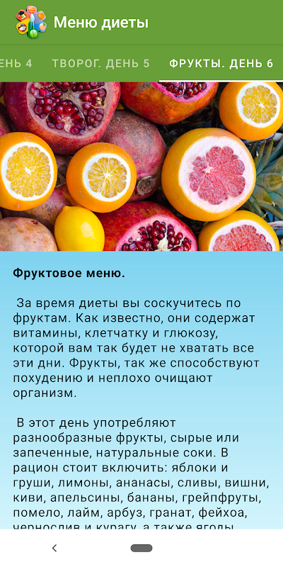 +Добавлены рецепты для каждого из 6 дней диеты