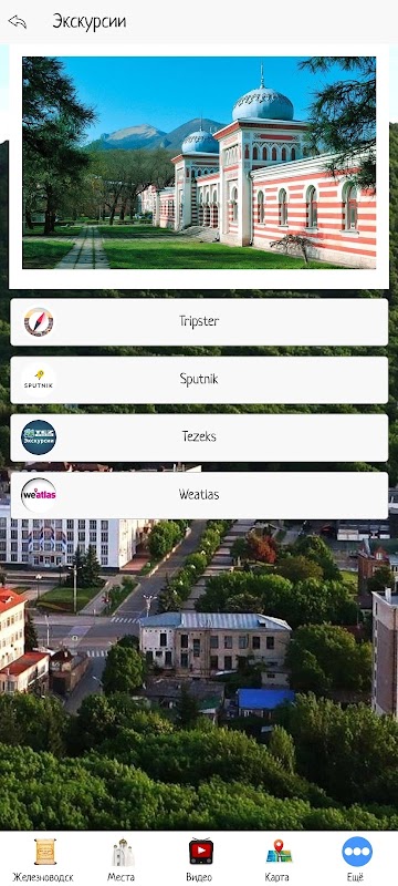 In der Anwendung können Sie die Stadt Zheleznovodsk kennenlernen, einen Ort für eine Reise auswählen, indem Sie sich die Sehenswürdigkeiten und Videobewertungen ansehen. Auch in der Anwendung gibt es Informationen über Reisebüros und Hotels, die ihre Dienstleistungen in der Stadt Zheleznovodsk anbieten.
