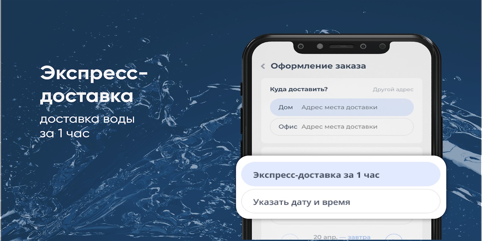 Mehrere bequeme Lieferintervalle stehen Ihnen zur Verfügung: morgens, nachmittags und abends. Kuriere liefern Wasser ab 1 Stunde.
