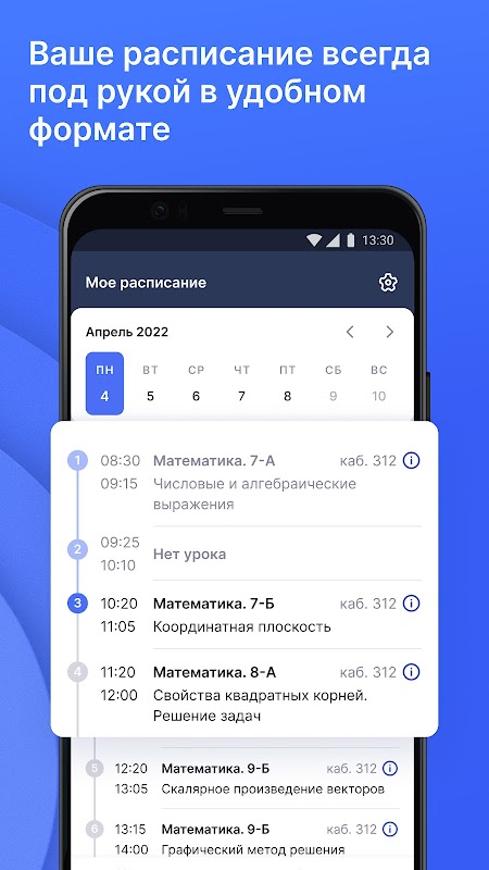 Mit der mobilen App können Sie Ihren Stundenplan anzeigen, mit dem Klassenprotokoll arbeiten, einschließlich Markierungen und Markierungen löschen, Hausaufgaben aufgeben, Abwesenheiten markieren und andere nützliche Funktionen verwenden, die ein Lehrer benötigt.