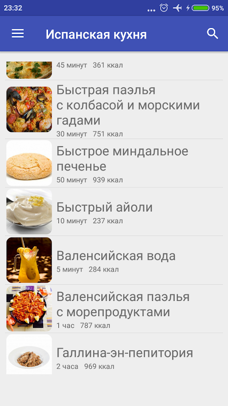 - Ориентировочное время приготовления блюда с картинками;