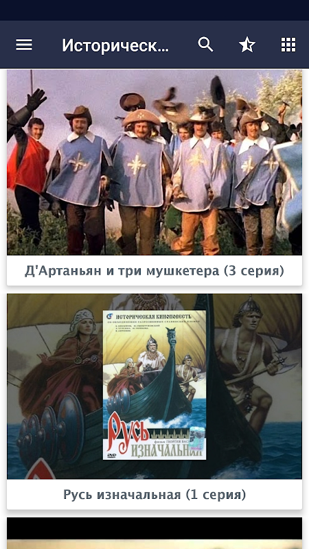Das historische Kino wird durch Spielfilme und Dokumentarfilme repräsentiert, diese zwei ungleichen Genres, die in einer Anwendung namens historische Filme kombiniert werden. Historische Filme sind historische Filme, die Geschichte Russlands und Russlands, russisches Kino und Filme, sowjetisches Kino und sowjetische Filme.