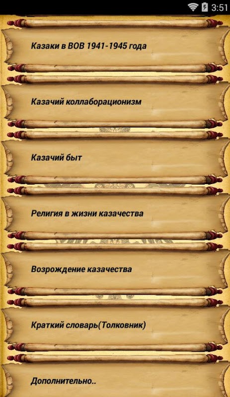 Eine einführende Version der Anwendung über die Geschichte der Kosaken. Aus der Bewerbung erfahren Sie alles über die Geschichte, Lebensweise der Kosaken, sowie über die bekanntesten Vertreter der Kosaken. Kosakenruhm. Seegeschichte der Kosaken Kultur und Rituale der russischen Kosaken Aber dies ist natürlich keine vollständige Liste. Sie werden etwas über die Ausbildung der Kosakentruppen erfahren, die die Saporoschje-Kosaken, die Stadtkosaken und andere sind. Sie erfahren mehr über den Aufstand und die Unruhen der Kosaken Sie erfahren, wie die Geschichte und die Wiederherstellung der Kosaken in Russland stattfanden. Kosakenlieder, Geschichten und Legenden. Es gibt ein Kosaken-Nachschlagewerk mit Erklärungen zu Kosaken-Begriffen.Dies ist eine Einführungsanwendung, daher sind einige Abschnitte begrenzt.