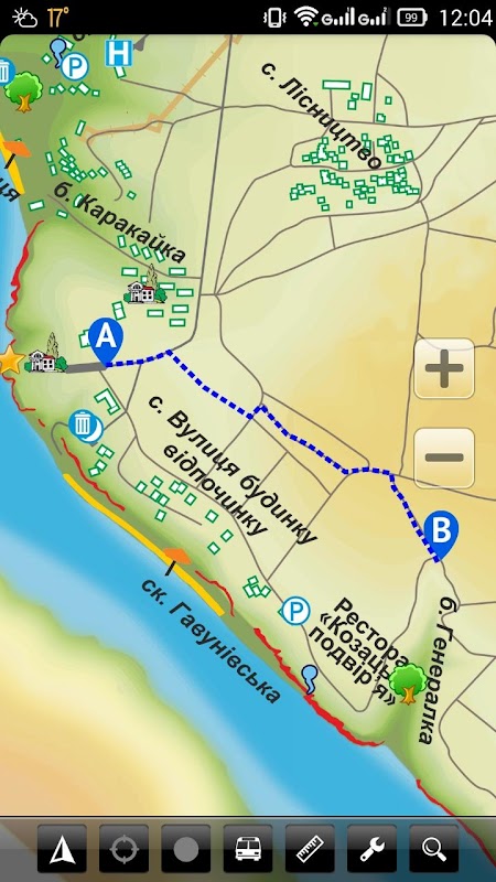 * Вимірювання відстаней на карті (лінійка)