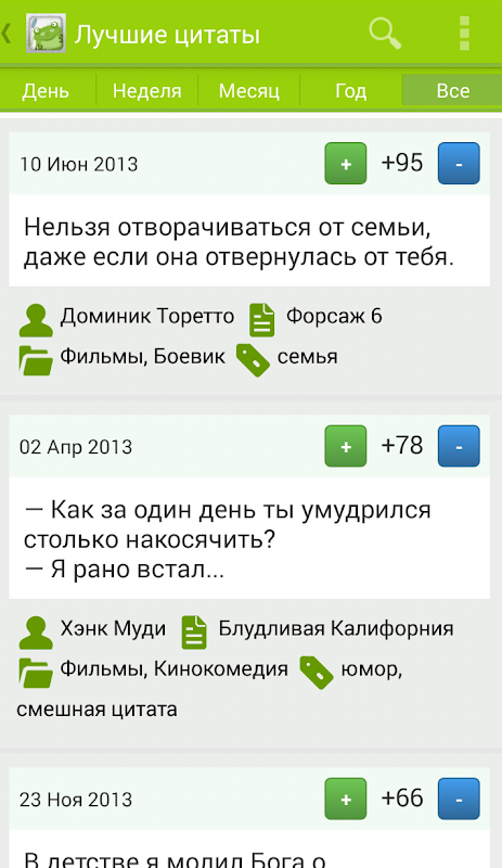 Kvoteka - eine Sammlung von Zitaten und Aphorismen berühmter Persönlichkeiten, sowie die Ausdrücke und Phrasen aus Filme, Lieder und Bücher.