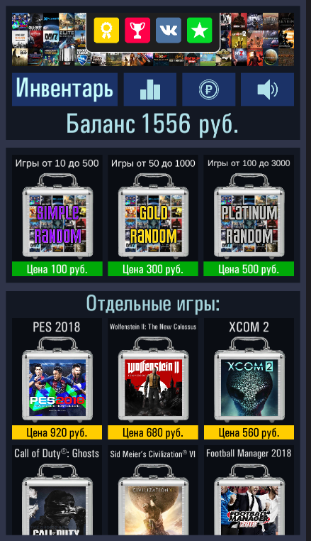 Внимание: Это игра - эмулятор, симулятор, все выпавшие игры не могут быть добавлены в Ваш аккаунт стим, игра создана только ради демонстрации, тренировки и в развлекательных целях.