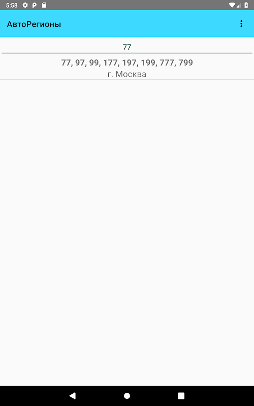 Die Anwendung enthält die aktuellste Datenbank mit Codes von Maschinenregionen aus Russland.