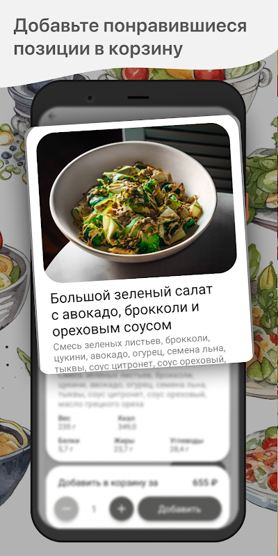 So geben Sie eine Bestellung in der Anwendung „Korobok Gastrobar“ auf: Wählen Sie die gewünschten Artikel aus dem Menü aus, legen Sie sie in den Warenkorb und gehen Sie zum Bestellbildschirm (durch Klicken auf das Warenkorbsymbol).