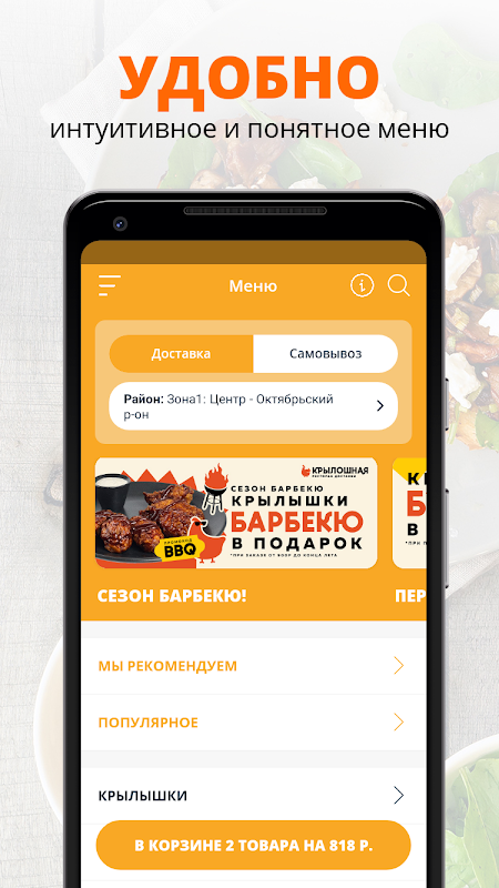 Unsere Speisekarte umfasst 15 einzigartige Flügelsorten sowie fleischige Keulen und knusprige Snacks. Schnelle Lieferung in ganz Irkutsk!
